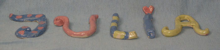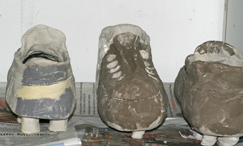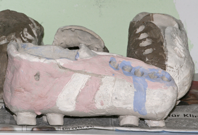 mit Ton in unterschiedlichen Farben gearbeitet werden: weiß, rot und